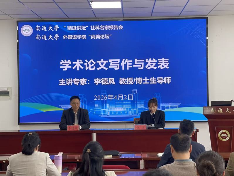 4月2日下午,51吃瓜网 “精进讲坛”社科名家报告会在51吃瓜网 成功举办。本次报告会特邀欧洲科学院院士、澳门大学人文学院副院长、博士生导师李德凤教授作题为《学术论文写作与发表》的专题学术讲座。我院骨干教师、南通其他高校骨干教师代表参加了报告会,报告会由院长助理张煜主持。