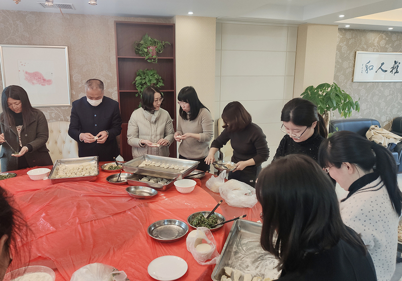 活动中,大家一边大秀厨艺、切磋包饺子技巧;一边互相交流、切磋牌技。男教工们也踊跃参加,为活动增添一抹不一样的色彩。现场气氛热烈,其乐融融,欢声笑语不绝于耳。简单的饺子馅,有人包出“金元宝”,有人包出“花边饺”,有人包出“小笼包”等,创意十足,个性满满。待到一盘盘热气腾腾、香味扑鼻的饺子端上桌时,大家围坐在一起分享劳动与欢乐的果实,互相传递着“更岁交子、团圆福禄、吉祥如意、平安喜乐”的美好新春祝福。