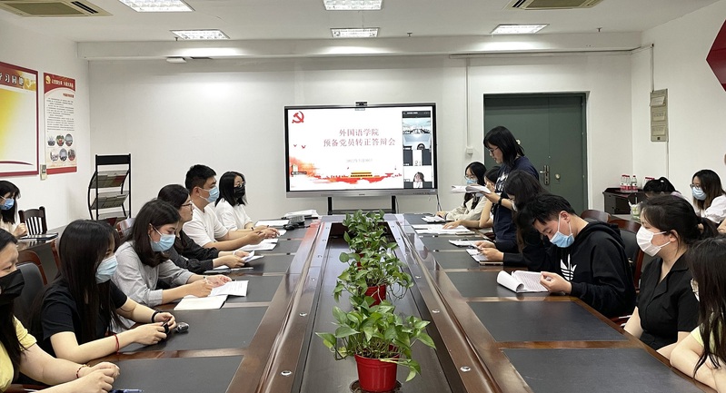 5月30日下午,外国语学院召开预备觉员转正答辩会,答辩会以线上线下相结合的方式进行。