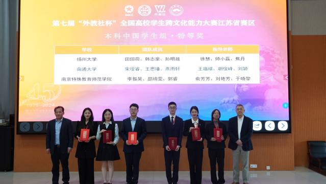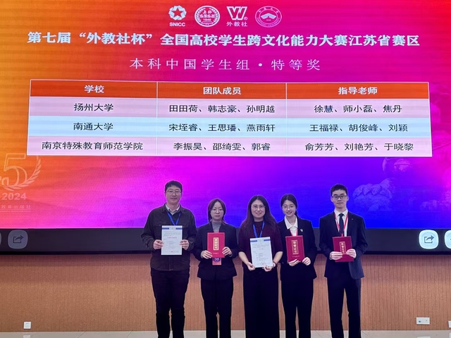 11月1-3日,第七届“外教社杯”全国高校学生跨文化能力大赛江苏省赛区比赛于在我校举办。在此次大赛中,我院商务英语专业宋垤睿、教育科学学院小教语文(定向)专业王思璠、商学院(管理学院)工商管理专业燕雨轩三位同学代表南通大学出战,经过两轮激烈的角逐,荣获江苏省赛区特等奖。我校留学生SATHINI NAMANIWAN、HOANG THI PHUONG ANH、NGUYEN THI THU获国际学生组二等奖。