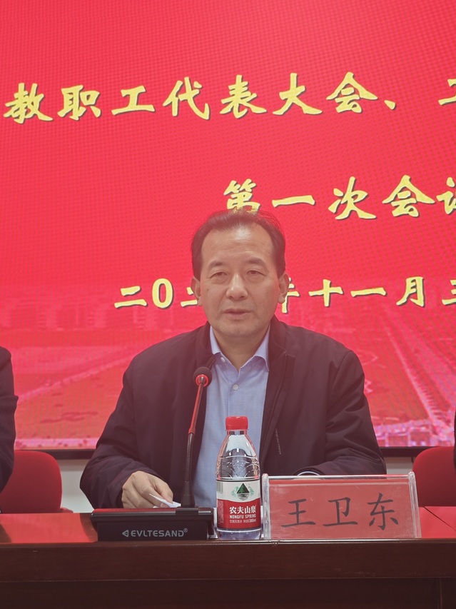王卫东对本次会议的召开表示热烈的祝贺,充分肯定了学院过去五年在党建工作、专业、学科建设,以及工会工作中取得的显著成绩。他对学院新一届“两代会”工作提出三点要求:一是强化政治引领,稳固筑牢工会工作的政治根基;二是突出服务职能,持续提升教职工的获得感与幸福感;三是深化改革创新,全力激发工会自身建设的内生动力。