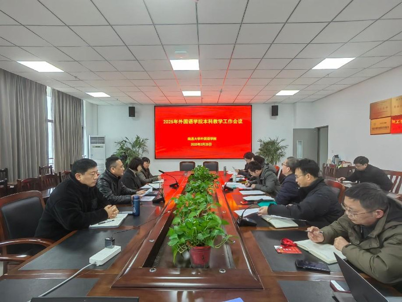 2月25日,外国语学院召开新学期本科教学工作会议。院长佘军、副院长吕雪峰、王雪玉,院长助理杨卫芳,以及各系部主任和全体教务老师出席了会议。会议由副院长王雪玉主持。