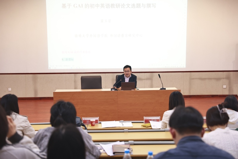 近日我院外语教育研究中心聂玉景博士应邀赴苏州工业园区朝前路实验学校,为“孙向梅名师工作坊第十三次主题研修暨园区初中英语学科基地校研讨活动”作专题讲座,分享生成式人工智能在初中英语教研领域的应用经验。