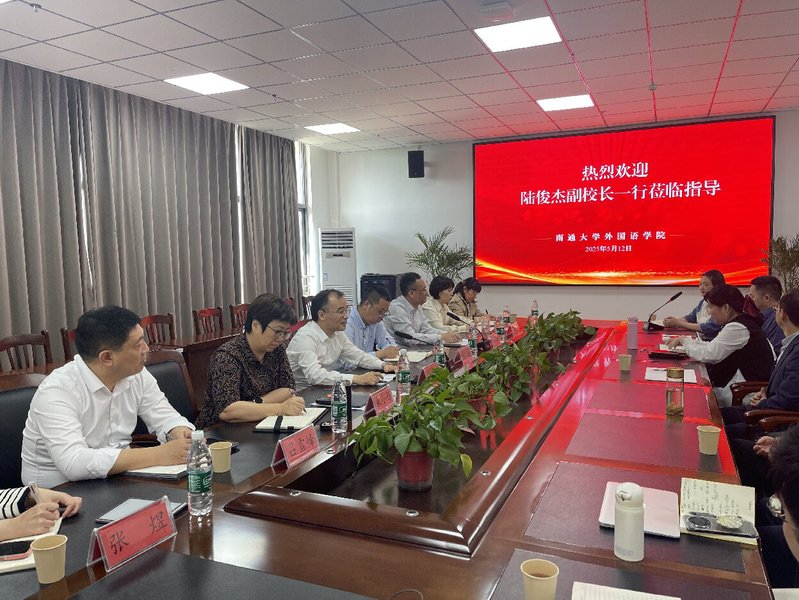 陆俊杰听取了外国语学院近年来人文社科工作情况的汇报,对我院的努力与工作成效表示肯定。陆俊杰强调,外国语学院是一个大院,虽然面临外部形势的挑战,但学科基础扎实,发展潜力巨大。就今后的工作,他提出三点要求:一要凝聚发展合力,树牢“一盘棋”意识,加强团队合作,推进成果产出;二要有组织科研,强化目标导向,以高质量成果为牵引;三要主动求变,紧跟外语学科发展前沿,突破研究方向固化,探索研究新路径。