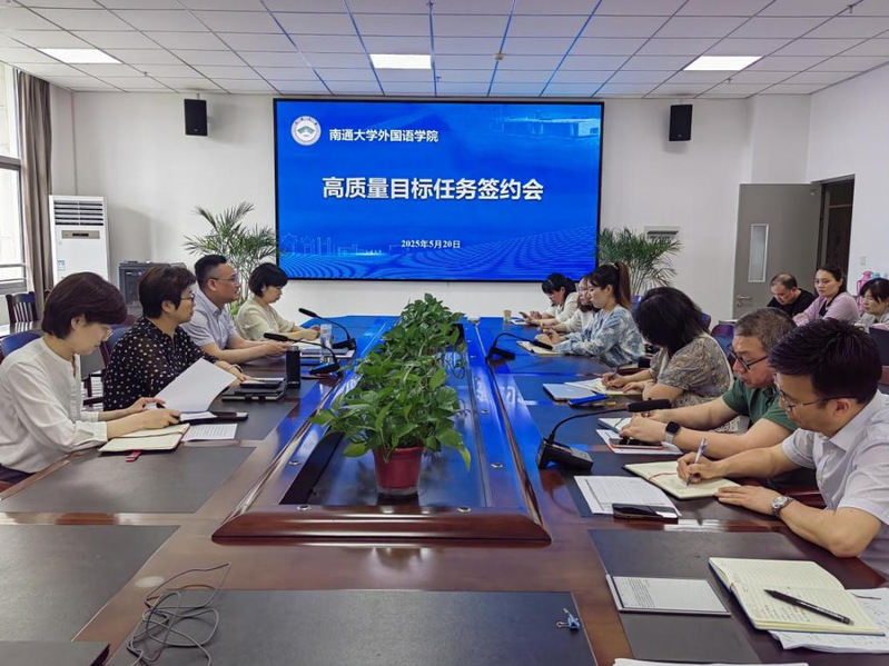 5 月 20 日下午,外国语学院召开高质量目标任务签约会,学院领导班子成员和各系(部、室、所、中心)负责人参加会议。