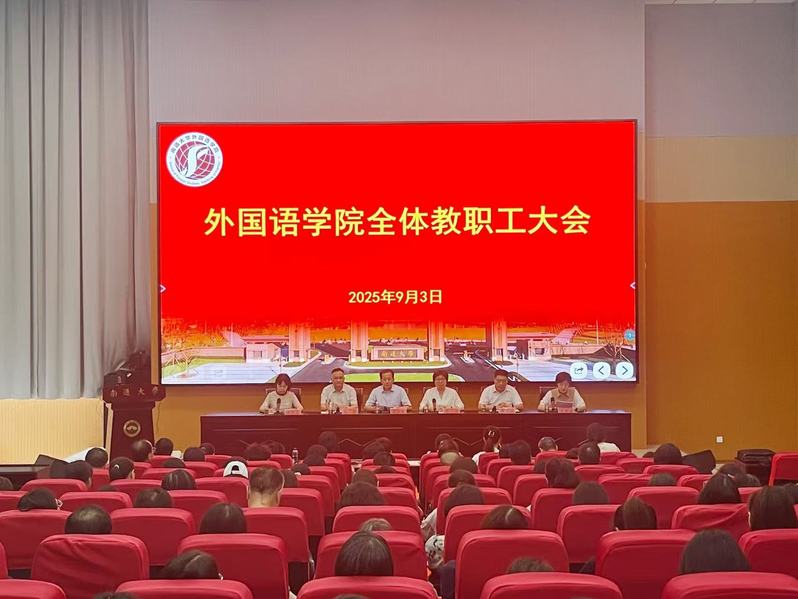 9 月 3 日下午,外国语学院召开新学期工作会议。会议深入传达学校上半年目标考核工作汇报会暨新学期工作部署会精神,全面总结学院上半年工作成效,并对下半年及未来一段时期的重点任务进行系统部署。校党委副书记王卫东出席会议并发表讲话,学院党委书记朱小娟主持会议。