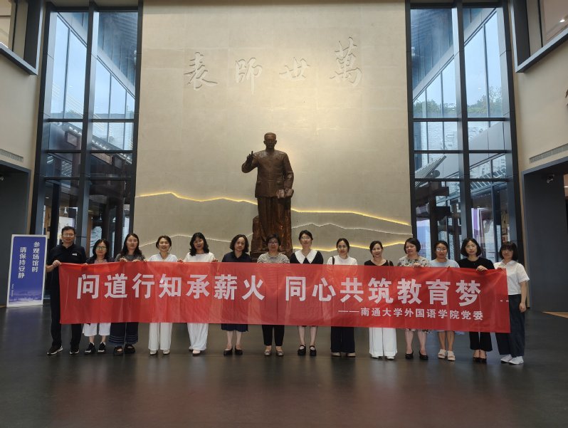 9 月 12 日,外国语学院党委组织民主党派教师与少数民族教师代表赴南京行知园,开展 “问道行知承薪火,同心共筑教育梦” 主题教育实践活动,将师德专题教育与实地践学深度融合。此次活动既是学院党委强化统战工作、凝聚思想共识的重要实践,也是推进师德师风建设、筑牢教师育人初心的重要举措。