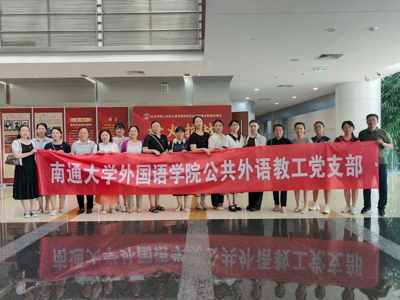 为深入学习南通的抗战历史,弘扬江海儿女的家国担当精神,外国语学院公共外语教工党支部于9月17日下午组织党员前往南通市行政中心,参观纪念中国人民抗日战争暨世界反法西斯战争胜利80周年专题展览。