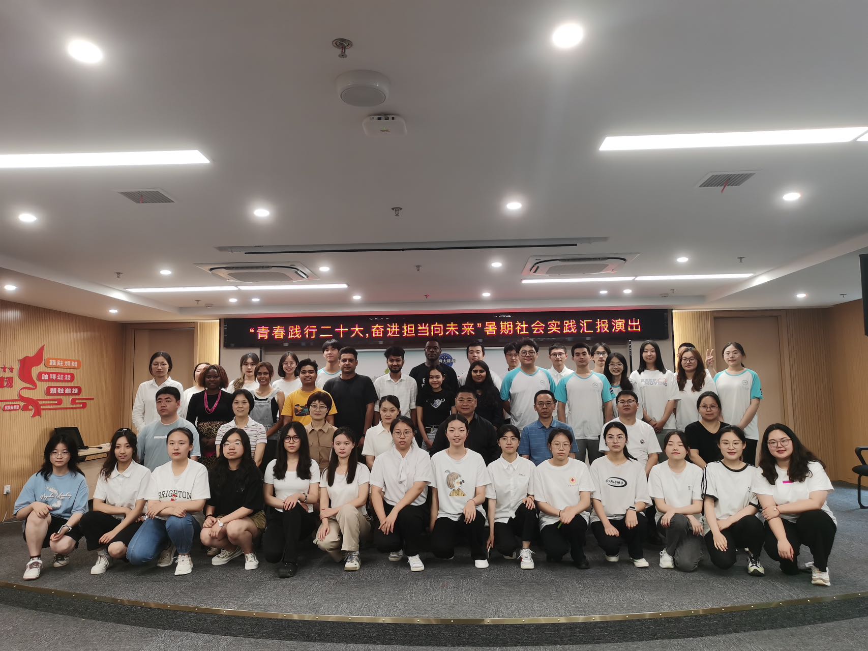 7月10日,由外国语学院与文峰街道党工委、办事处联合举办的“青春践行二十大,奋进担当向未来”暑期社会实践汇报演出在文峰街道红星社区顺利开展。