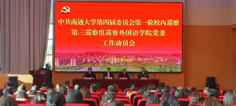 根据学校党委关于巡察工作的统一部署,3月20日下午,学校第四届党委第三巡察组巡察外国语学院党委工作动员会召开。校党委常委、副校长、第三巡察组组长施佺作动员讲话。外国语学院党委书记朱小娟主持会议并作表态发言。校党委第三巡察组成员,外国语学院党委领导班子成员和全体教职员工出席会议。