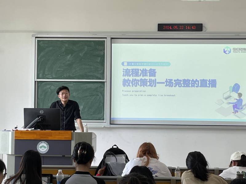 5月20日至22日,南通今日引擎信息科技有限公司三位富有行业经验的老师参与跨境短视频直播实训。贾皓辰老师向同学们详细讲解了短视频账号搭建和赛马机制,袁晶晶老师讲解了直播间搭建逻辑和认知框架,王岭老师勉励同学们积极参与创新创业活动。