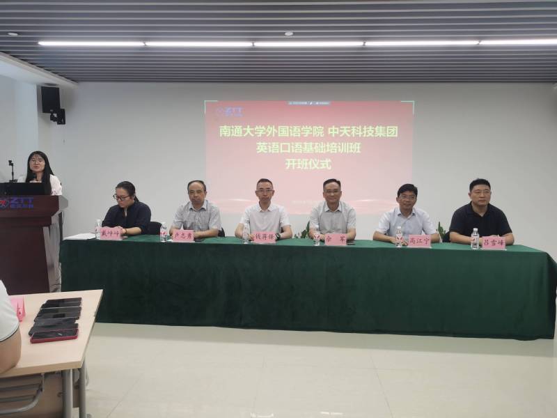 7月20日下午,由南通大学外国语学院与中天科技集团联合举办的英语口语基础培训班,在中天科技集团南通科创中心三楼培训教室正式开班。中天科技集团人力资源部总经理钱蒋锋,南通大学服务地方处处长高江宁、继续教育学院院长卢志勇、外国语学院院长佘军、外国语学院副院长吕雪峰、外国语学院副教授戴峥峥出席开班仪式,来自中天科技各单位的53名学员参加培训。中天科技集团人力资源部经理周海霞主持此次开班仪式。