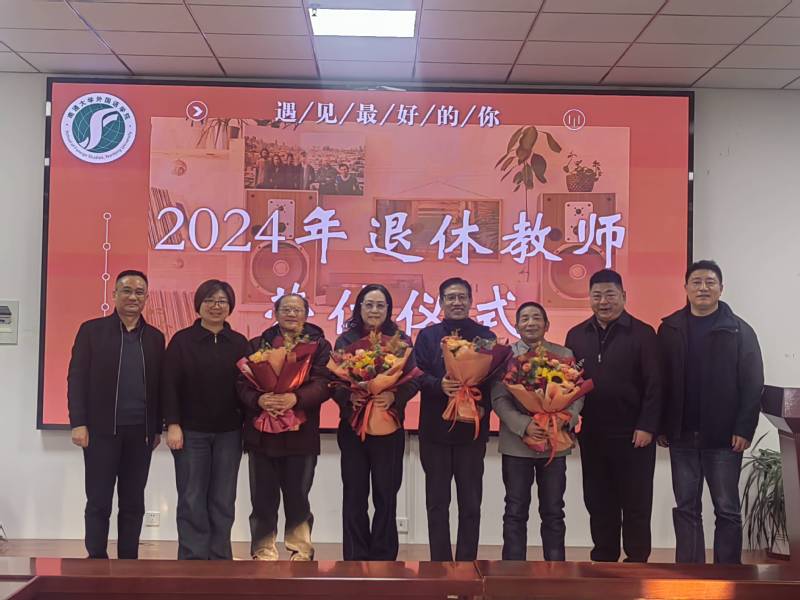 12 月 17 日下午,外国语学院在学院 701 会议室为施皓、沈国清、张宝国、周邦友四位教师举办了一场温馨而隆重的荣休仪式。此次活动旨在表达对退休教师多年辛勤付出的崇高敬意与深深感激,学院领导班子成员、退休教师所在系部及室负责人、部分教师代表共同出席,见证了这一充满温情与敬意的时刻。