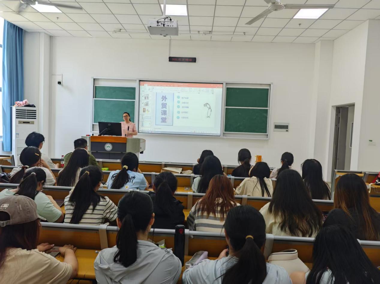 理论教学环节,由行业精英带来前沿洞见。南通盈泰医疗器械有限公司CEO王勤女士以“国际贸易流程与选品”为主题,通过对比传统外贸与跨境电商在客户获取、销售渠道、物流路径、运营模式等维度的差异,生动阐释了跨境电商在灵活性、响应速度和市场下沉方面的显著优势,为同学们打开了国际贸易领域的全新视角。南通小生信息科技有限公司CEO陈颖女士聚焦跨境电商就业与新机遇,点明商务英语专业学生凭借语言沟通优势,在跨境电商关键岗位竞争中占据的天然有利地位,极大激发了同学们的职业发展信心。