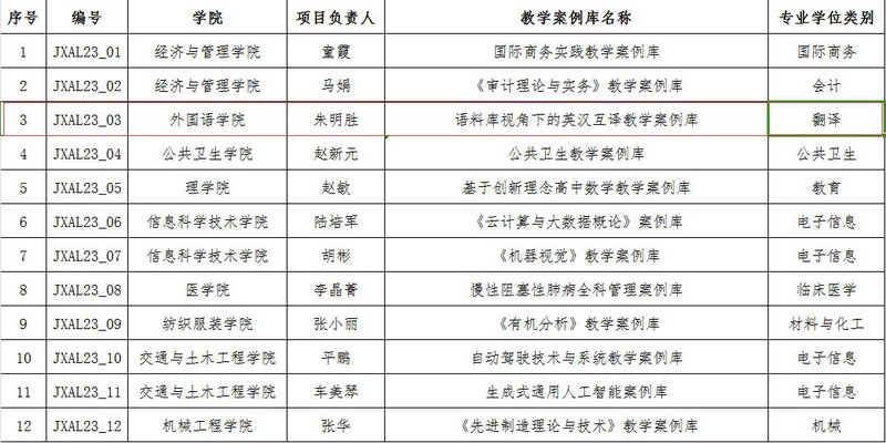 根据《关于开展 2023 年南通大学专业学位研究生教学案例库建设项目申报工作的通知》要求,经任课老师申报、学院推荐、学校组织专家评审,朱明胜教授获专业学位研究生教学案例库建设项目立项。